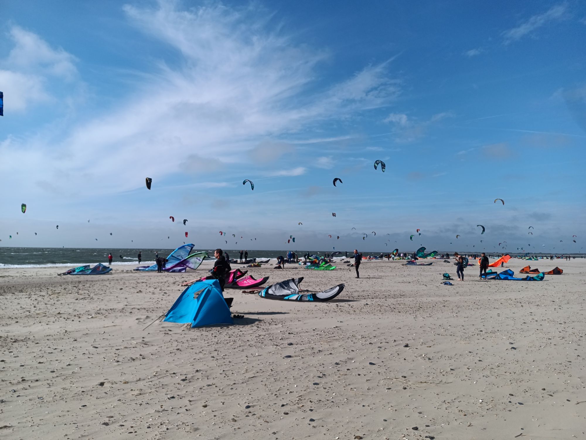 Après un périple de 8h j’arrivai sur la plage de Browersdam que Alban et François avaient foulé 2 heures plus tôt. Il était déjà presque 17h et il y avait déjà de nombreux cerfs-volistes sur le spot repartis en plusieurs groupes. Je rejoignis celui d’Alban cependant à peine j’ai eu le temps de me poser que la pluie fit son apparition, interrompant mon élan.