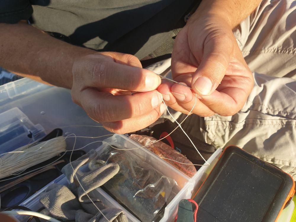 J’étais curieux de voir comment cela se faisait car si j’avais déjà vu comment faire un réparation en nouant les 2 morceaux sur le site de Richard Debré (Wind-R) et qui permet de faire une réparation de fortune rapide à base, il me semble, de nœud de 8 tissé, ce que me proposait Henri me semblait à l’oreille plus élégante car les lignes sont en quelque sorte retissées l’une dans l’autre. Le principe est de passer les extrémités l’une dans l’autre dans leur section transversale.