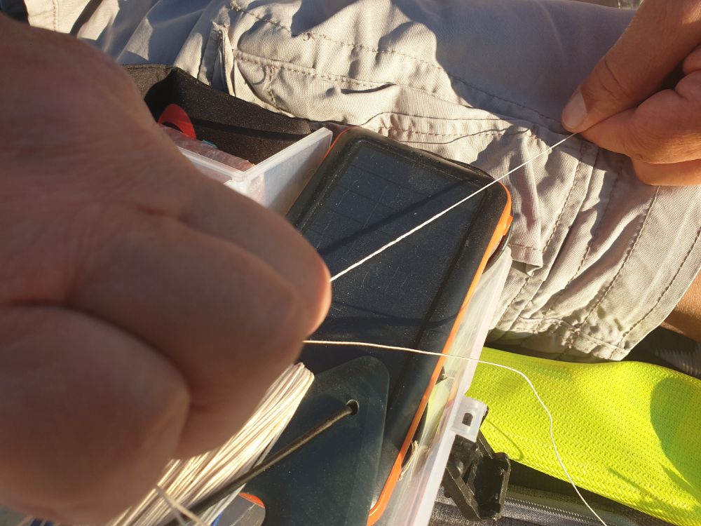 Une de mes lignes présentait un signe de fatigue en novembre dernier à Henin-Beaumont et je l’ai remplacée par un jeu complet par facilité. En effet il y avait un peu d’ignorance de ma part concernant les possibilités de réparation et je comptais me fabriquer avec ce vieux jeu de lignes de 36m, 2 nouveaux jeux de 22m et 9m. C’était possible car en effet le point de rupture se situait à moins d’1 mètre d’une extrémité.