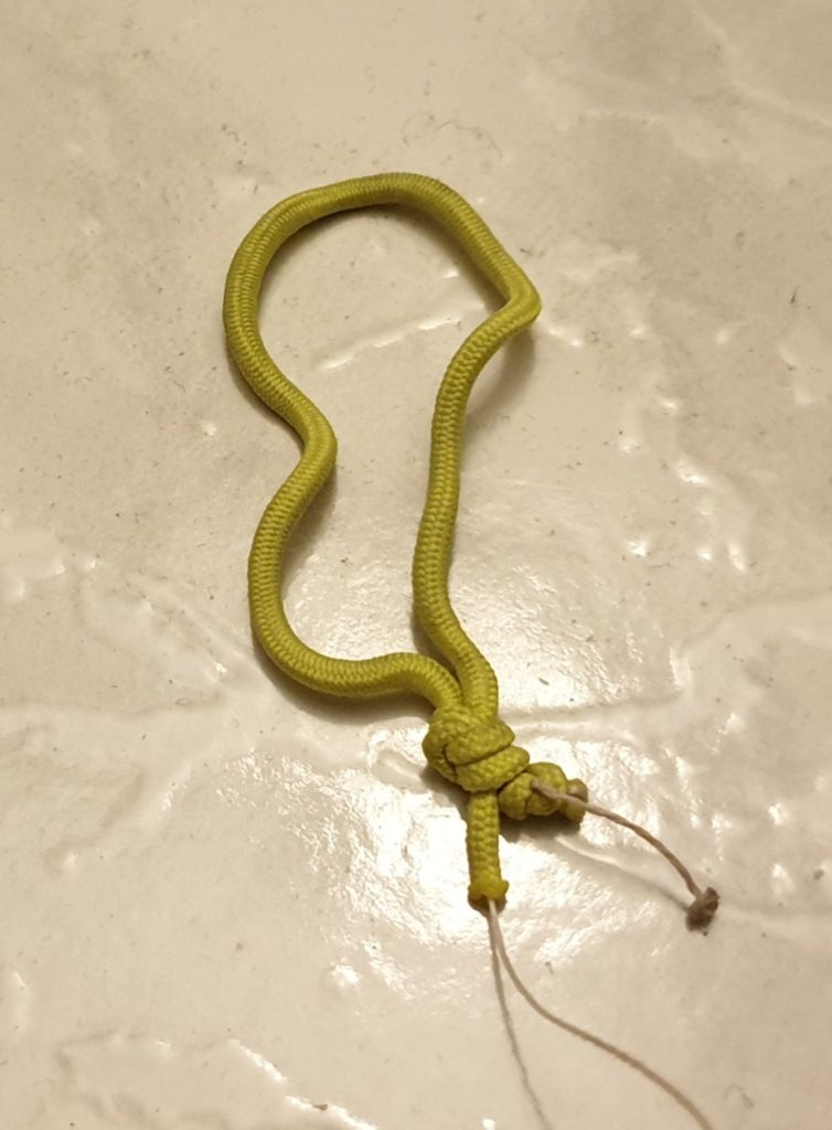 NB: si on n’a pas beaucoup de longueur de gaine, on peut faire un nœud de 8 à la place des 2 nœuds pour éviter de perdre 1 cm de gaine.