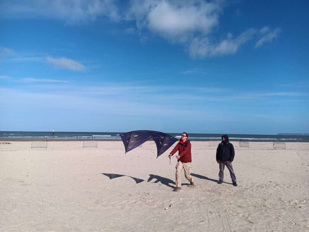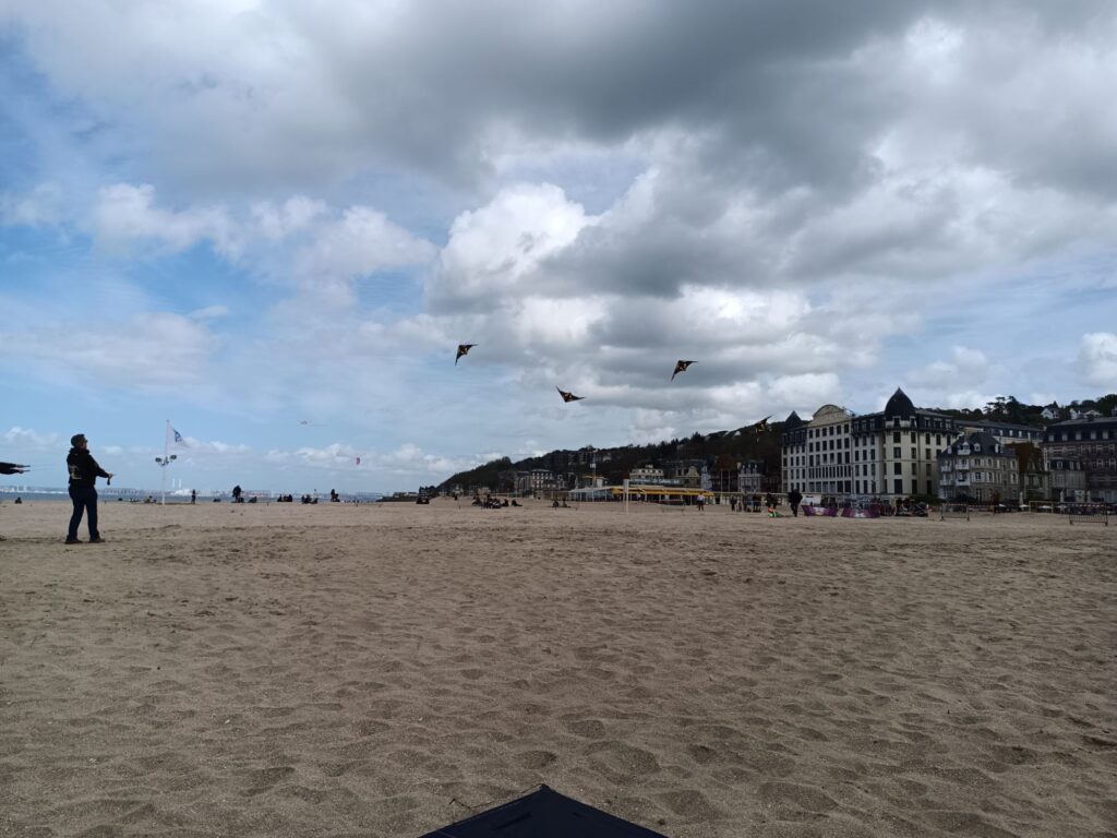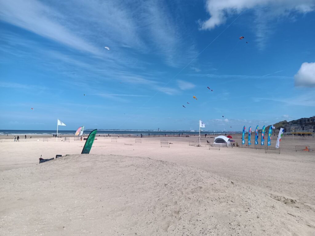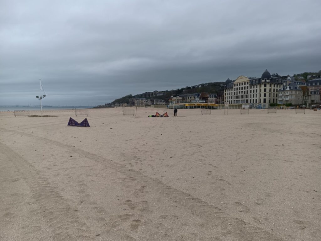Le festival se déroule sur 2 jour mais afin de bien profiter pleinement de bonnes sessions de vols, j’ai préféré rejoindre la plage de Trouville dès vendredi. Cela permet en outre d’éviter un peu la cohue des départ en week-end même si beaucoup font comme moi et partent le vendredi. Quoi qu’il en soit, j’ai pu aller sur le terrain un peu avant 10h, honorant ainsi l’heure du début des festivités.