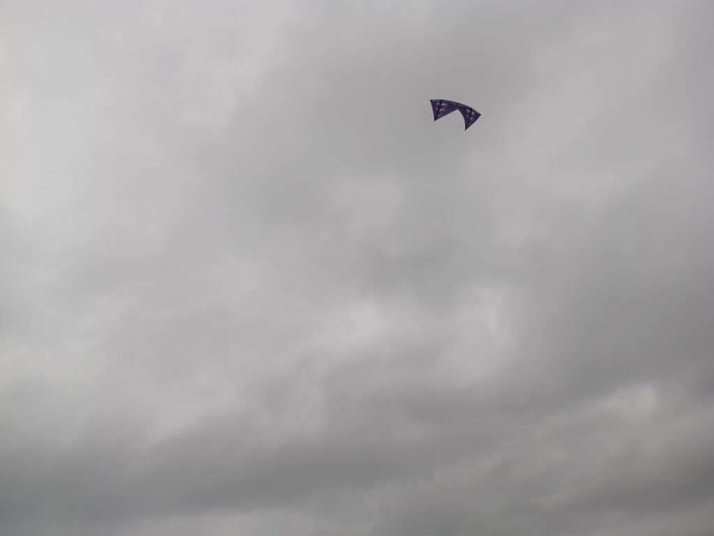 La météo n’était cependant pas au rendez-vous. Si j’ai pu voler avec les copains révo une grosse heure, la pluie annoncée vint se joindre à la fête. Elle fut d’ailleurs accompagnée de grosses rafales qui ont forcé tout le monde à aller s’abriter en attendant que le ciel se calme. Certains avaient sorti des iFlite, un petit cerf-volant monofil indoor.