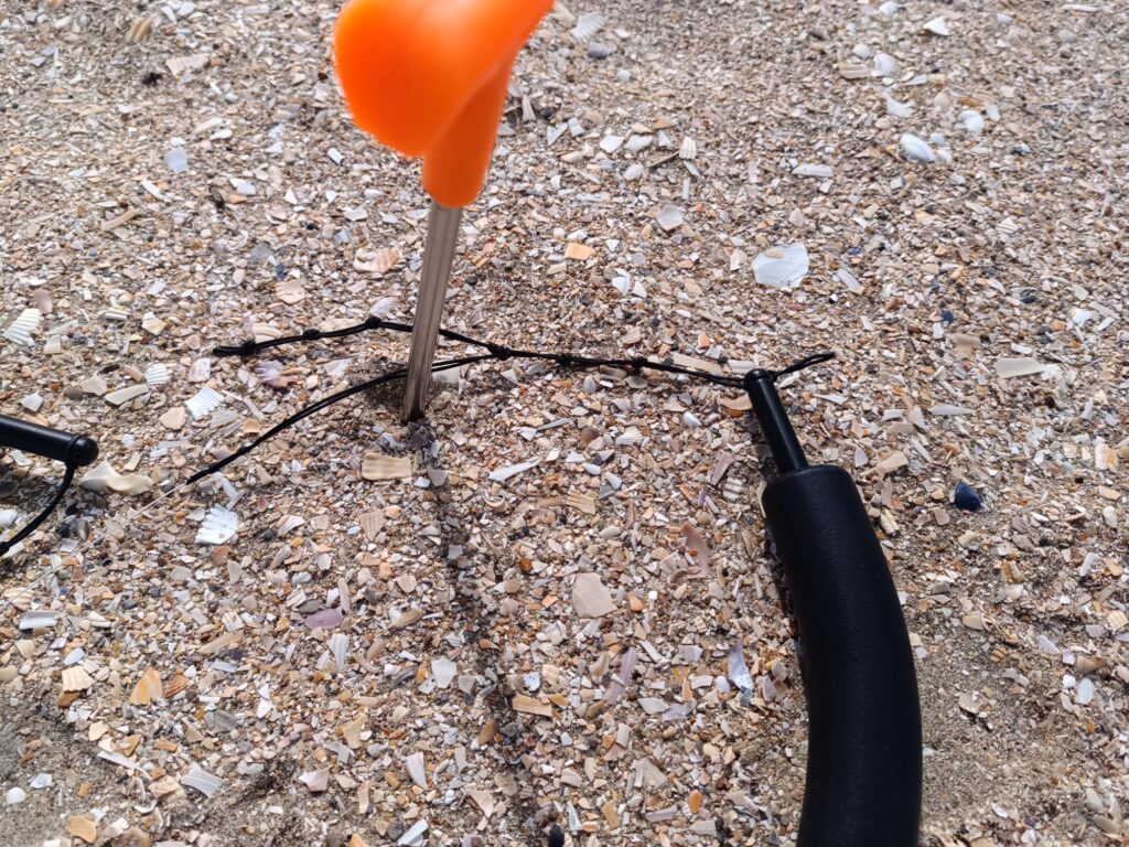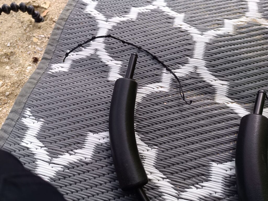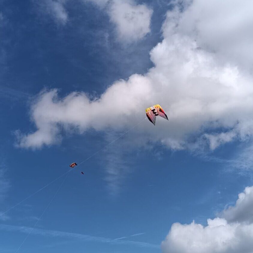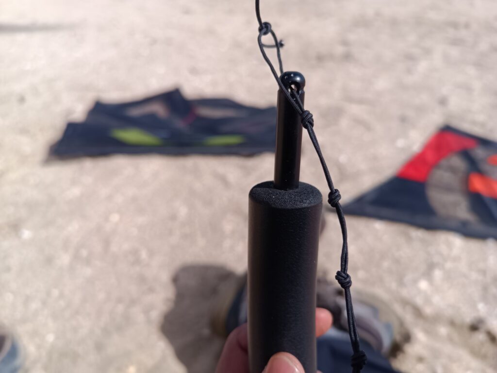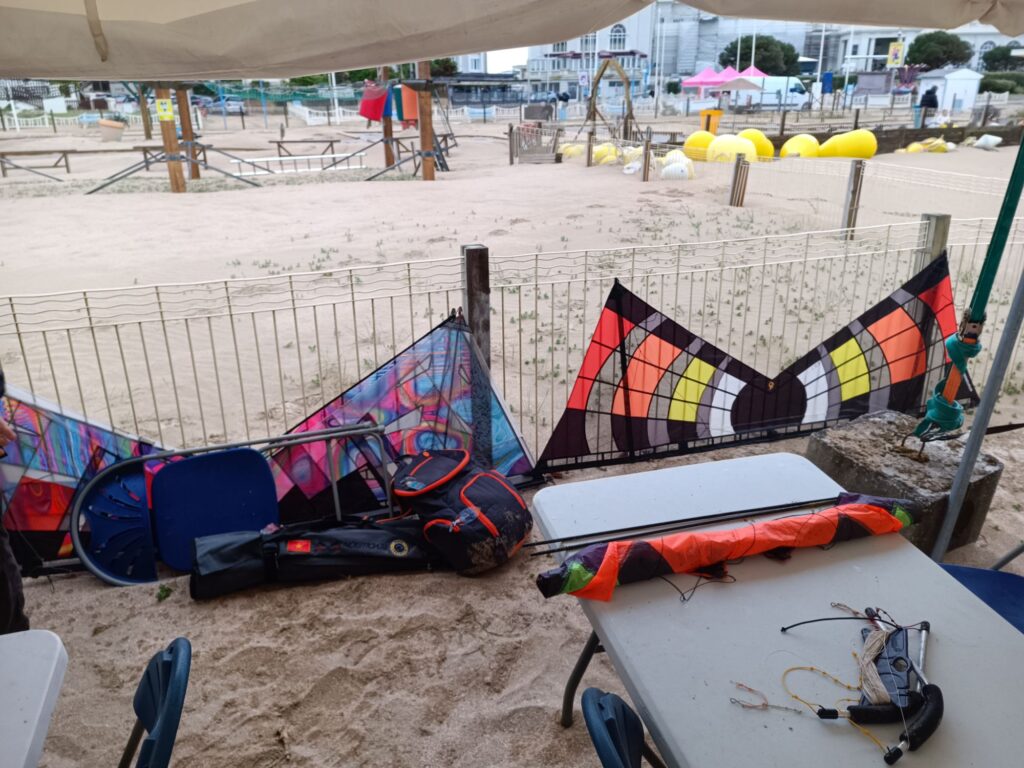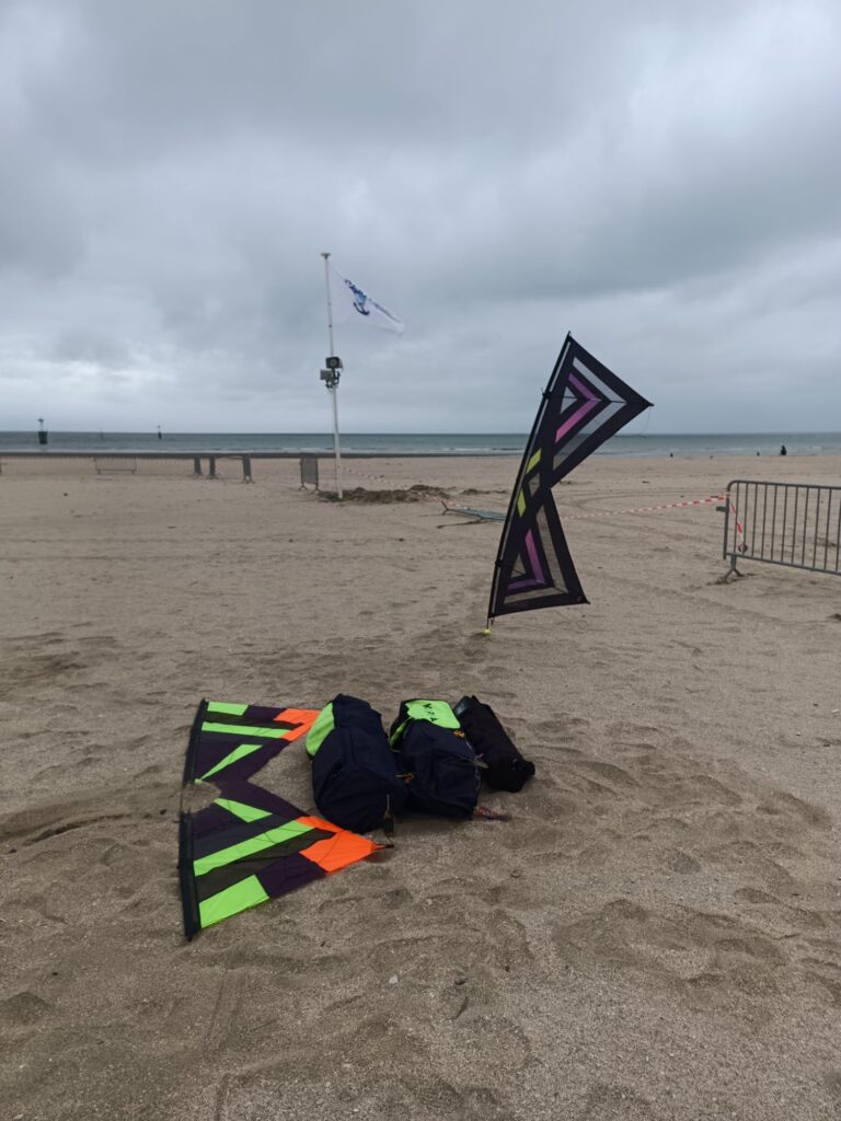 L’échelle réparée est moins longue, il suffit alors d’utiliser un nœud en moins par rapport à l’autre. Bon ce n’est pas parfait et il subsiste un décalage surtout dans les conditions très venteuse du jour mais cela m’a permis de reprendre le vol. Je vais devoir quand même refaire correctement mon échelle et en prévoir de rechange pour la prochaine sortie ! Pour mémoire la durée de vie des échelles est de 3 ans pour moi. C’est cohérent avec cet article qui date de 3 ans justement https://kitejust4fun.bressure.net/2023/10/01/changement-de-lechelle-de-noeuds-des-poignees-djinn/