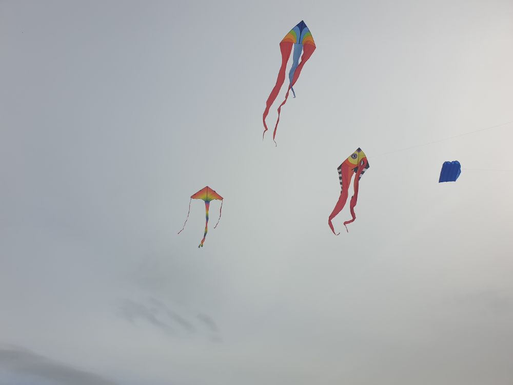 Cette année il n’y a avait pas beaucoup de monde au festival. Pas seulement au niveau des pilotes 4 lignes mais dans l’ensemble même. La météo plutôt mitigées n’avait pas attiré la foule des grands jours non plus. Par ailleurs j’ai pu retrouver un peu mon âme d’enfant devant le monofil de ma fille. C’est quand même chouette le cerf-volant !